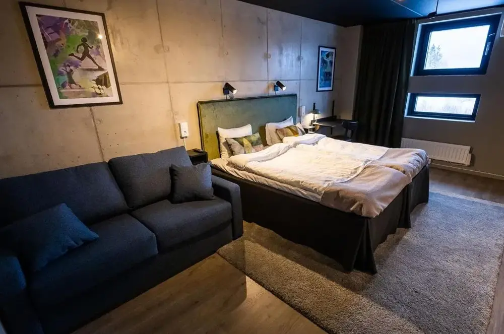 The breakfast was OK. The hotel's indoor mini golf was a highlight and good location with parking, close to the motorway to get on and to Mantorp Park. Good bathroom and shower, the hotel is quite new. Many young people in the hotel.